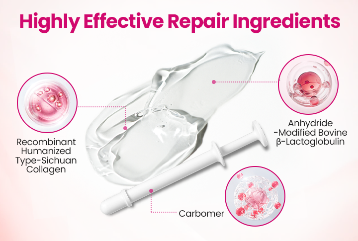 - Recombinant Humanized Type-Sichuan Collagen:This bioengineered collagen offers excellent biocompatibility and moisture retention. It promotes the regeneration of cervical and vaginal epithelial cells. accelerates the healing of microlesions. and strengthens the local mucosal barrier—contributing to long-term intimate health and physiological balance.