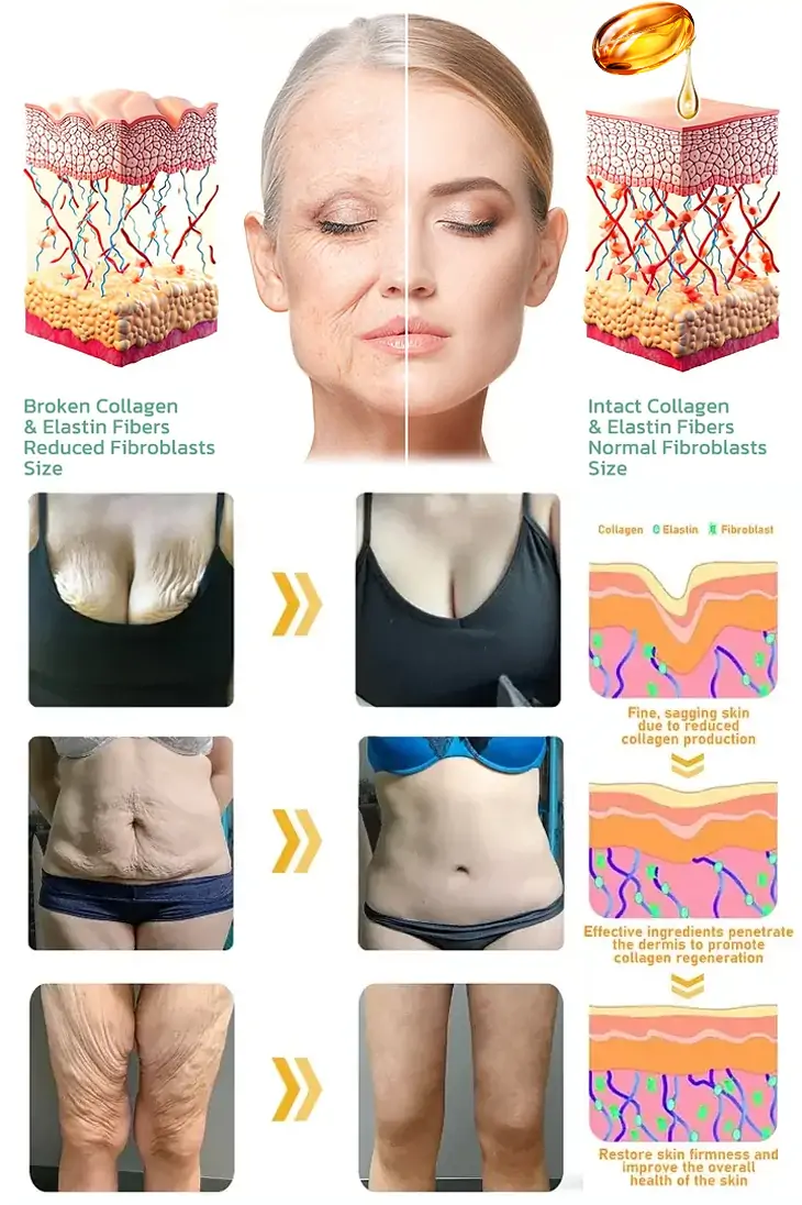 ✔ Supports collagen production. improves skin elasticity. and reduces signs of aging in the breast area